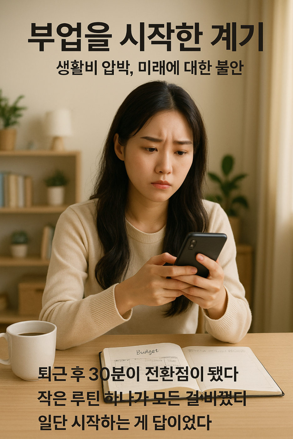 부업을 시작한 계기는 단순했습니다. 생활비 부족과 미래에 대한 불안이 원동력이었죠. 그래서 퇴근 후 30분, 제 시간을 '나만의 루틴'으로 바꿨습니다. 처음엔 막막했지만, 하루에 딱 한 가지라도 실행하는 것을 원칙으로 삼았습니다.