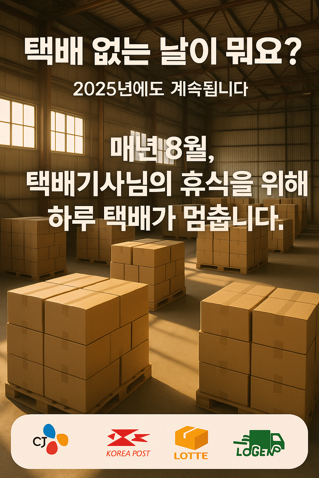 매년 8월, 택배기사님의 휴식을 위해 하루 택배가 멈춥니다.