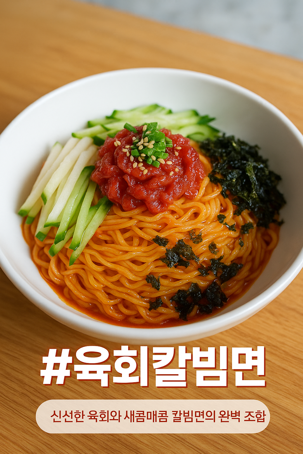 2) 🍜 Yukhoe + Kal Bibim Noodles (육회 + 칼빔면)